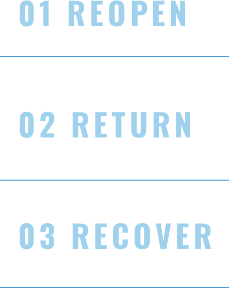 Our solutions are designed to fit your specific needs through three key phases: reopen, return, recover. They are available a la carte or as a combination of services; many can be customized. Our dedicated back-to-business concierge process is designed to help walk through your needs and determine your coordinated strategy for progress.